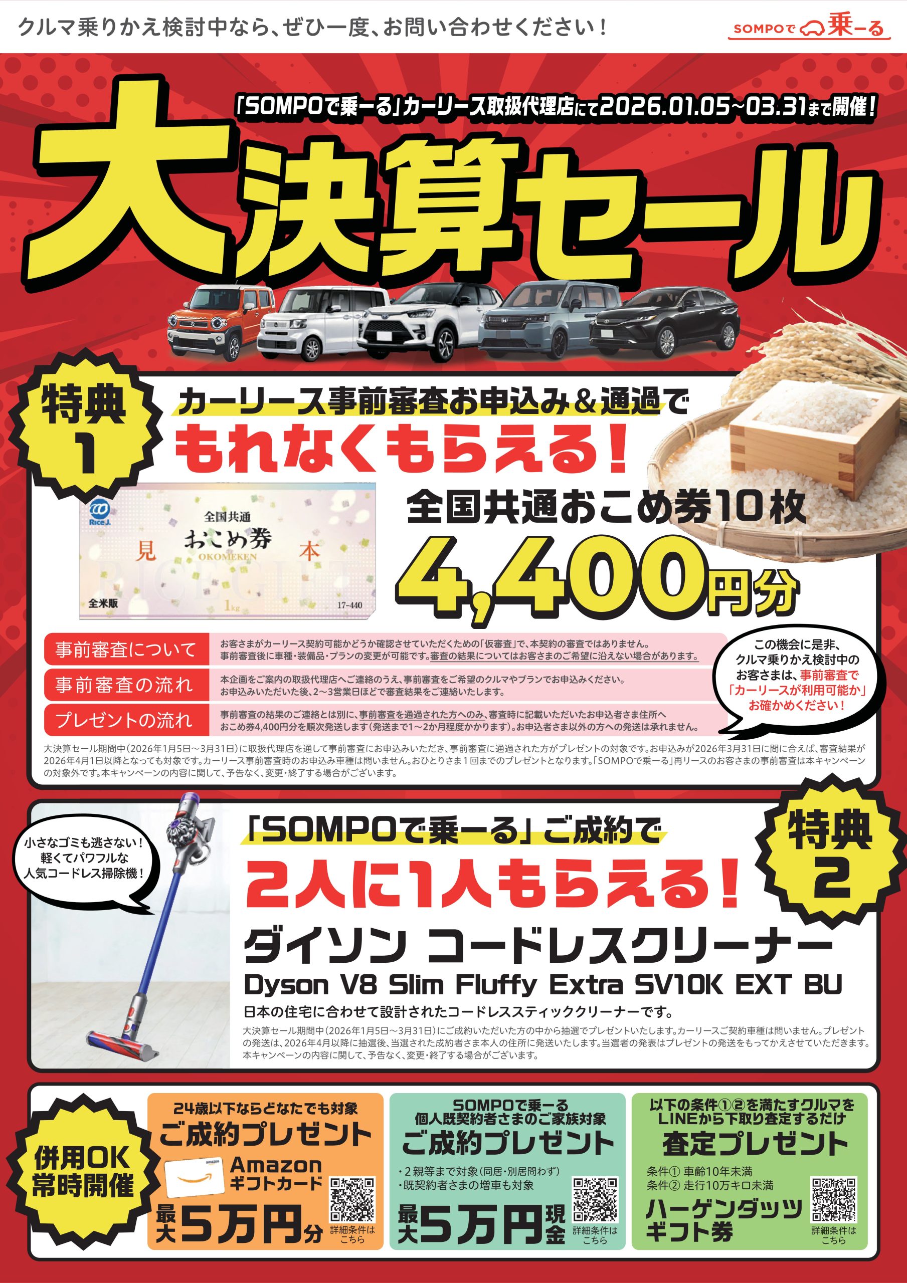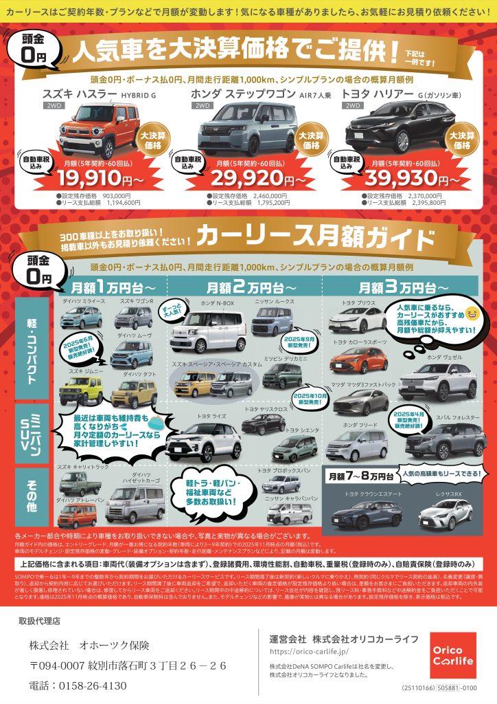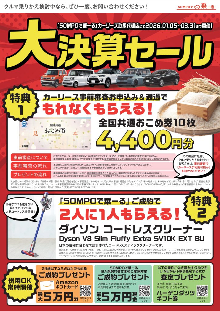 SOMPOで乗ーる/カーリース「大決算セール」のご案内!
